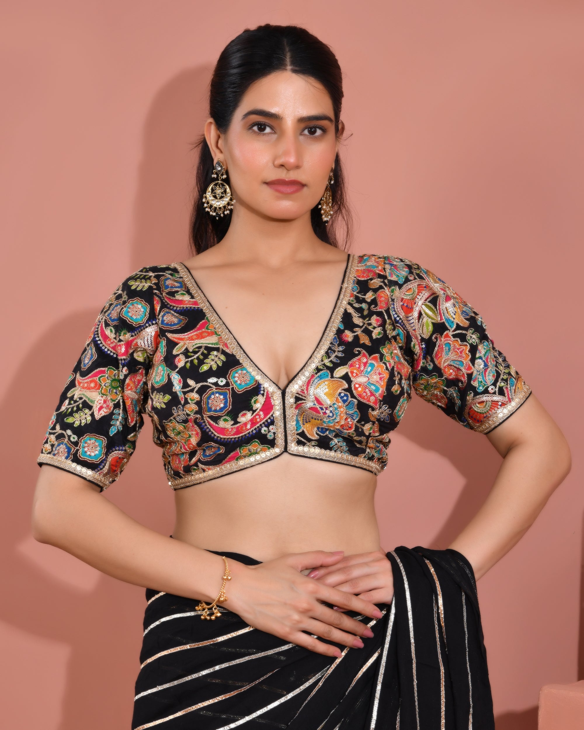 Black Embroidered Position Print Nyra Cut Blouse with sleeves