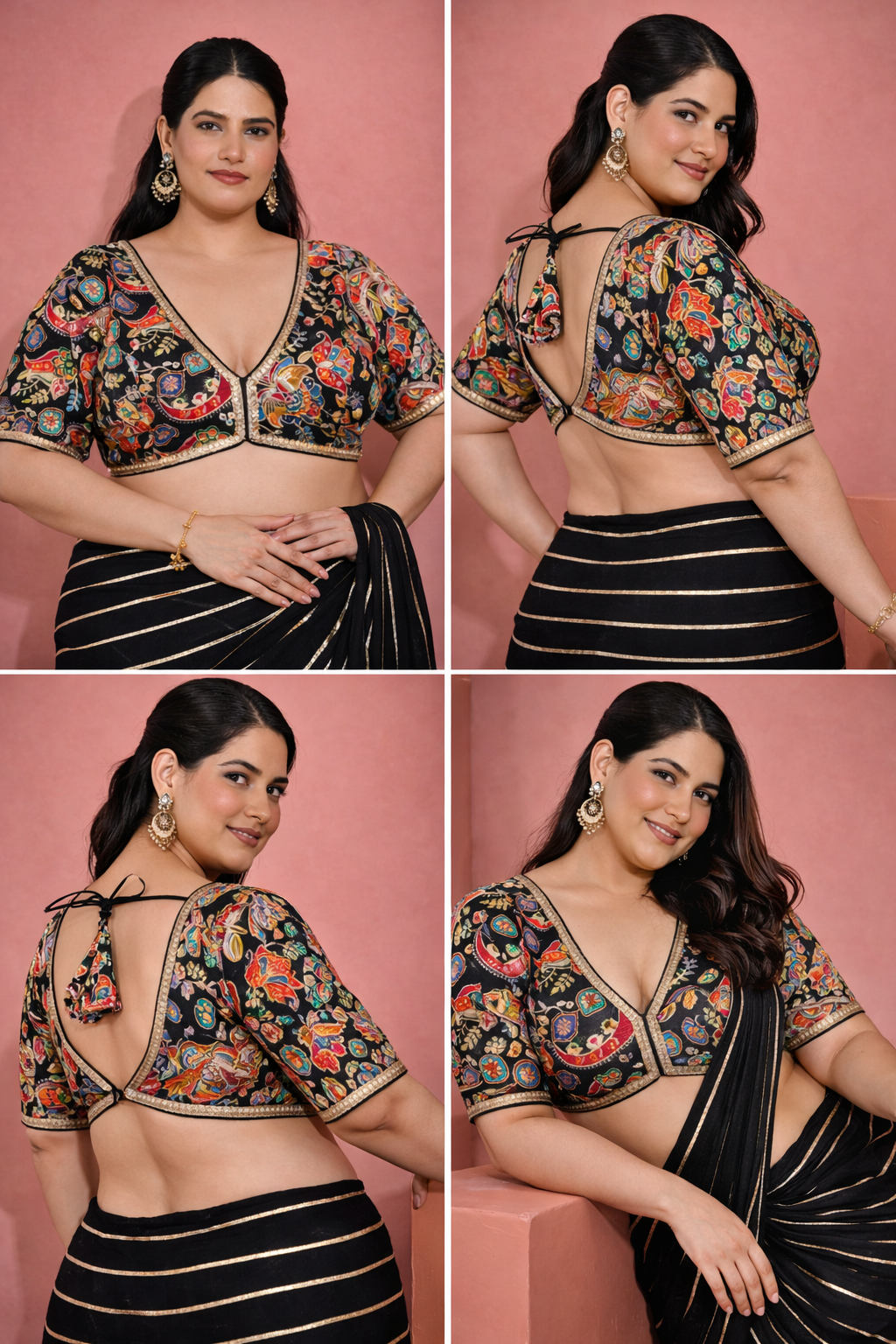 Woven Designed Kashi Banarsi Corset Style Padded Black Saree Blouse