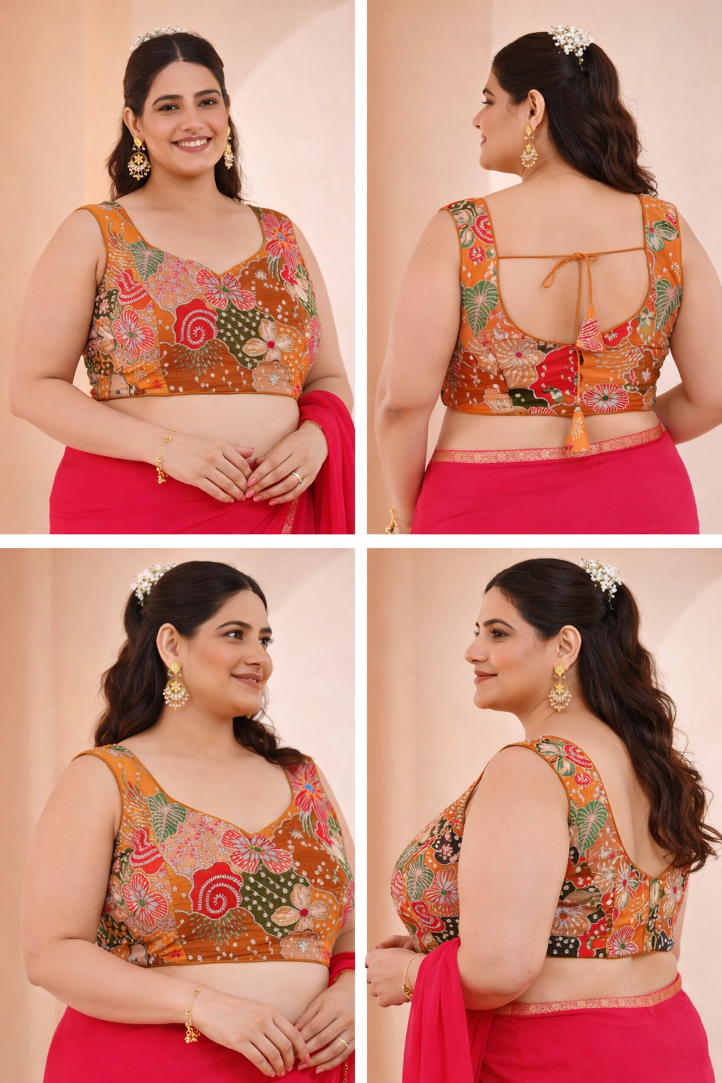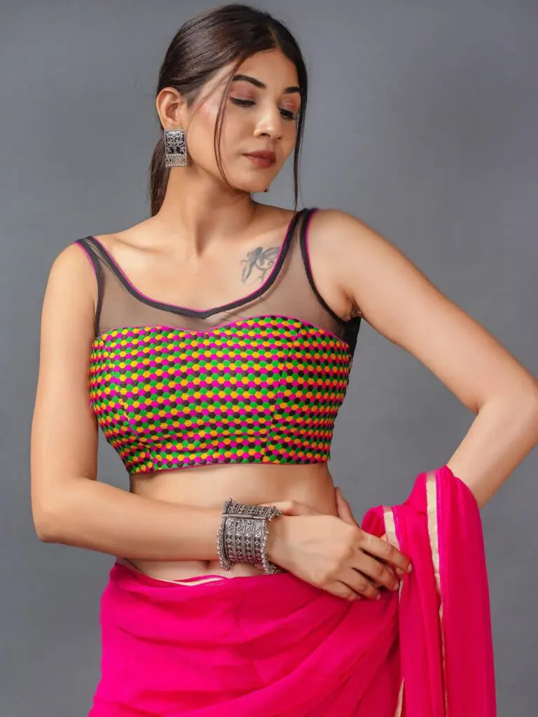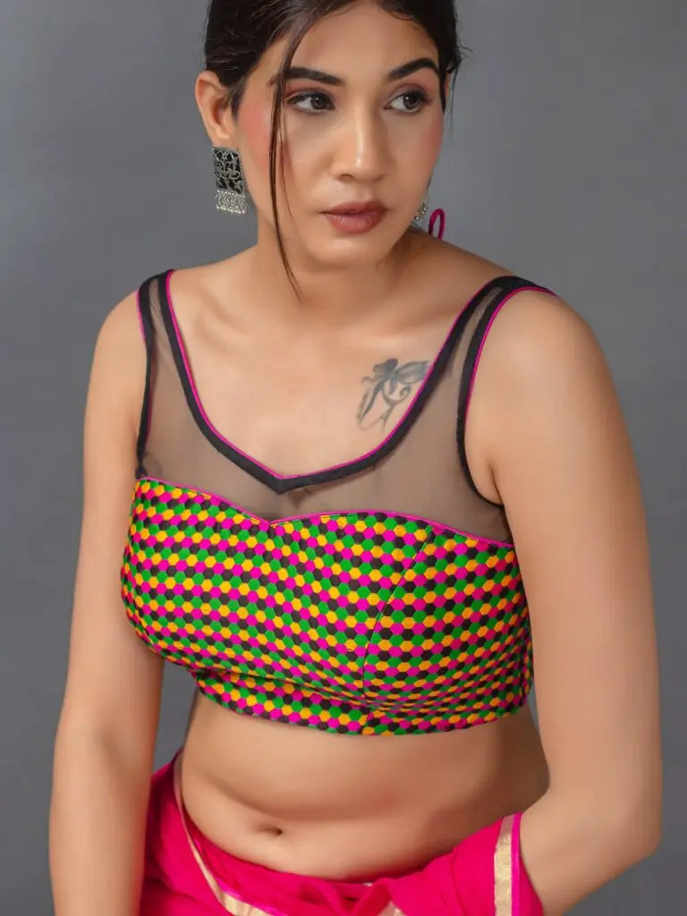 Women’s Bandhej Elbow Sleeves Readymade Sabyasachi Saree Blouse