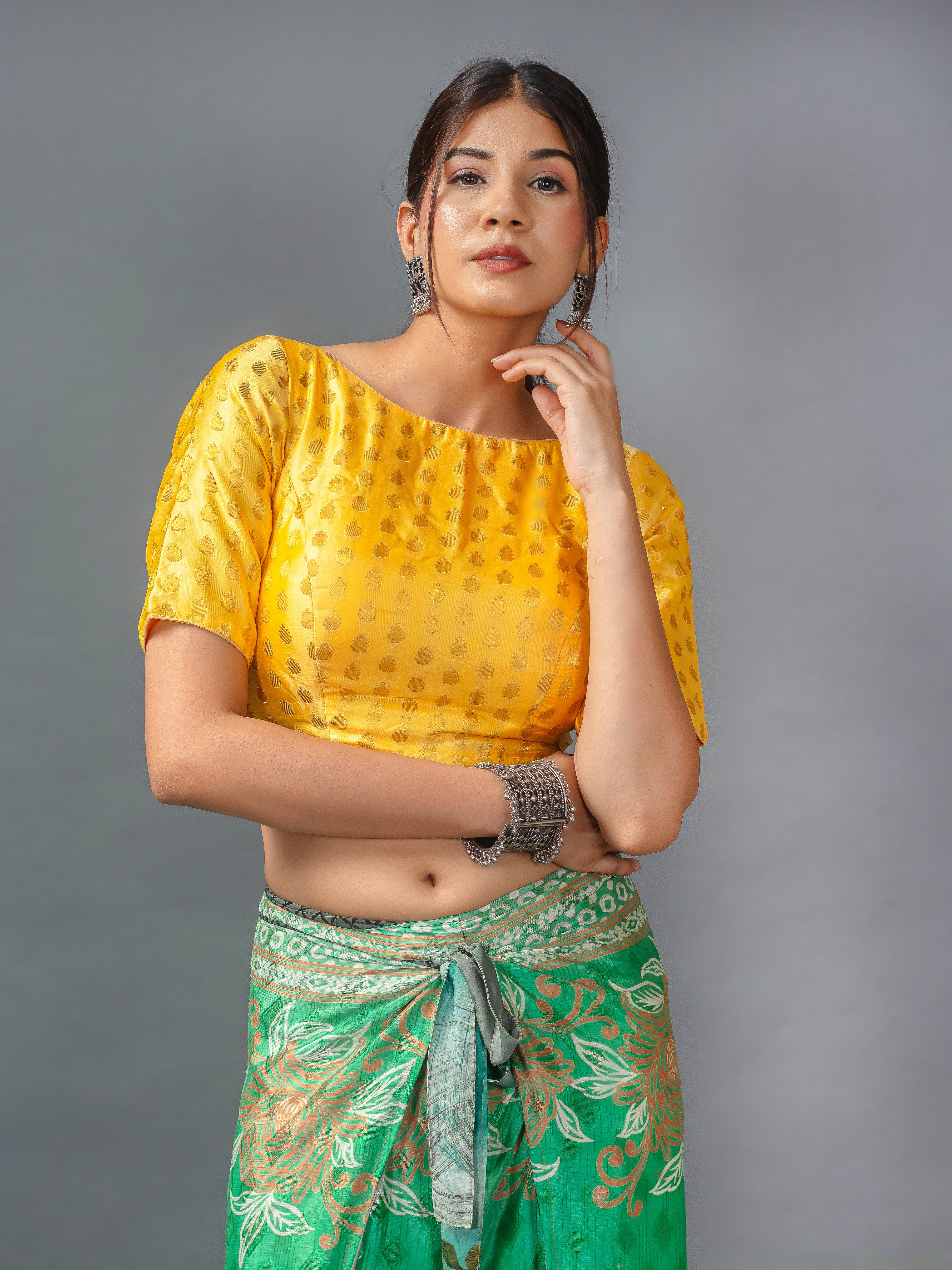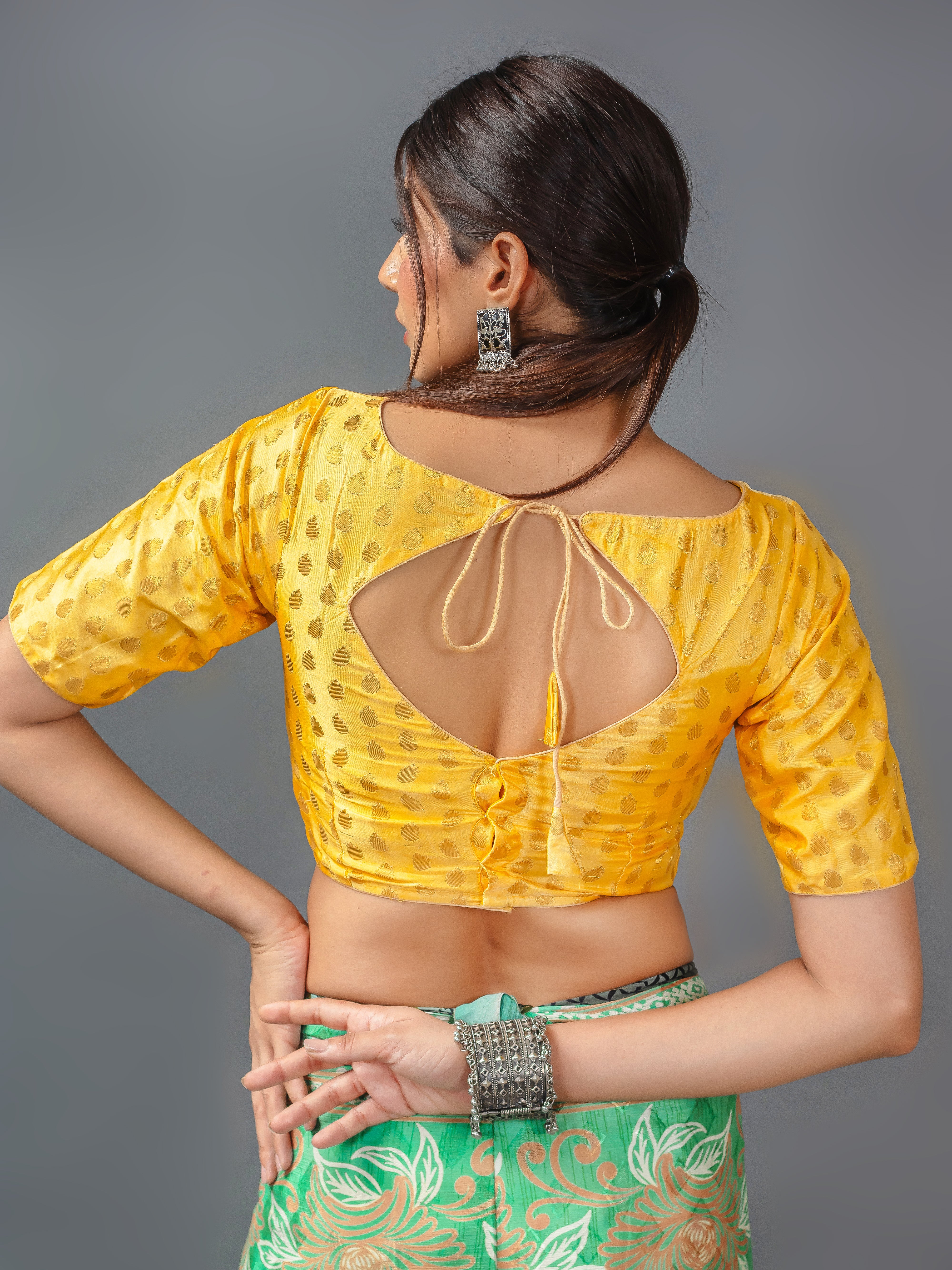 Women’s Yellow Banarsi Brocade Saree Blouse