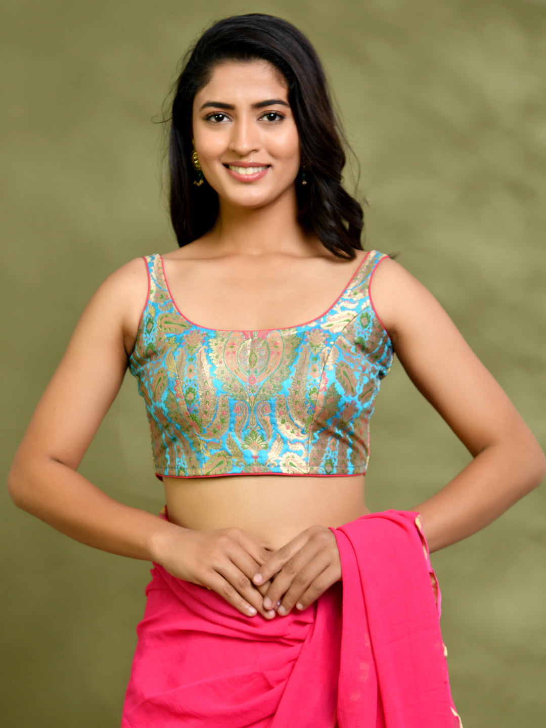 Women’s Banarasi Brocade Sleeveless Saree Blouse