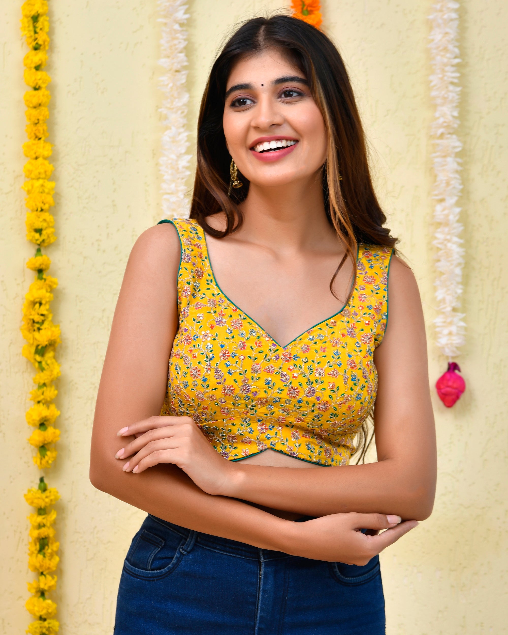Floral Golden Sequined Masaba Cut Blouse