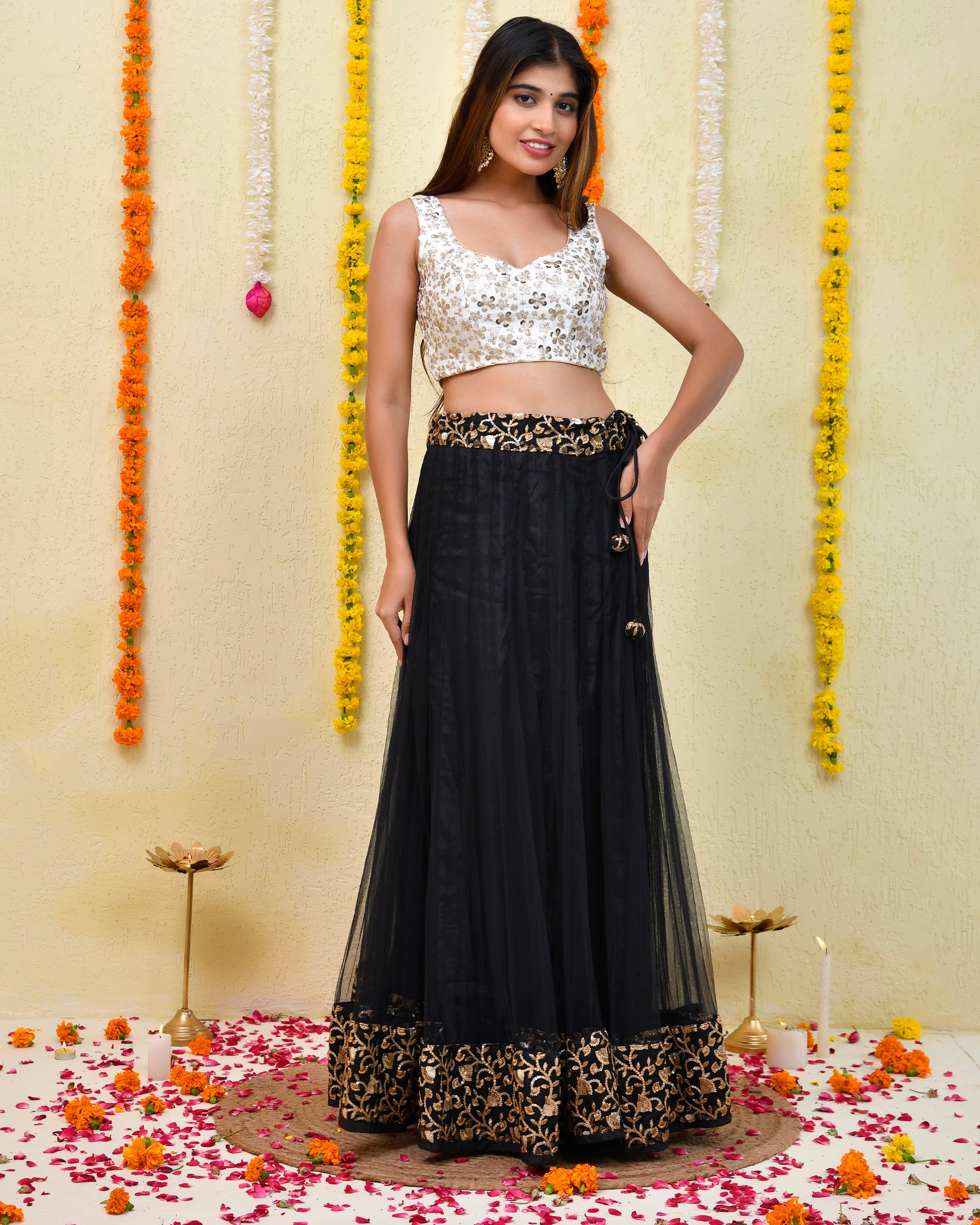 Floral Silver Sequined Masaba Cut Blouse