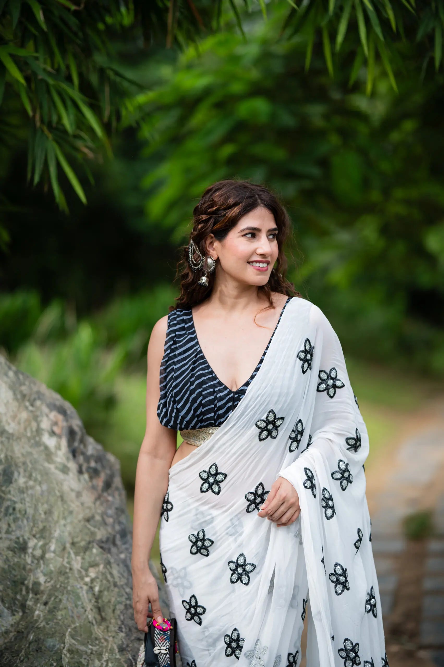 Women’s Black Lehriya Sleeveless Saree Blouse