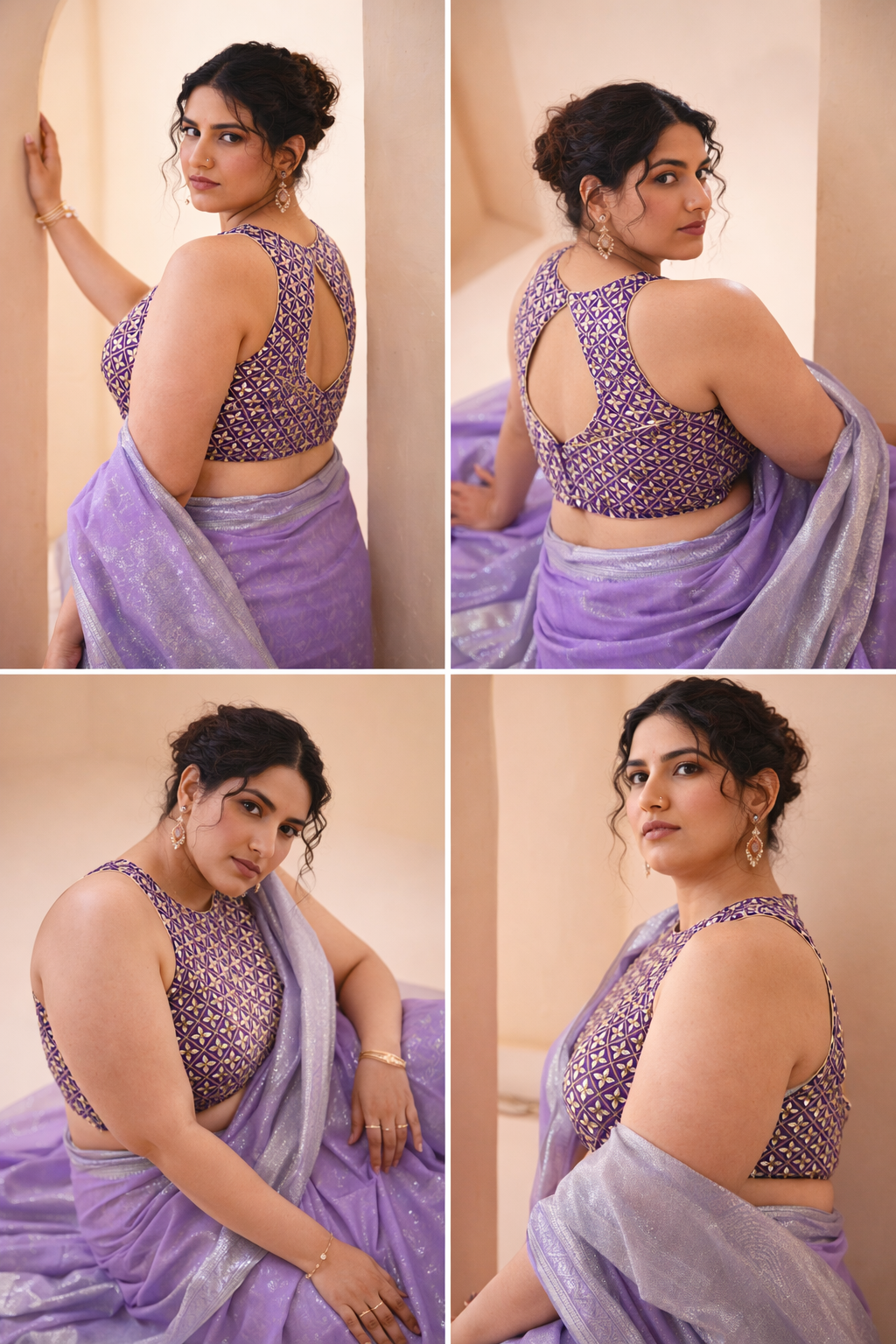 Mirror Work High Neck Purple Blouse
