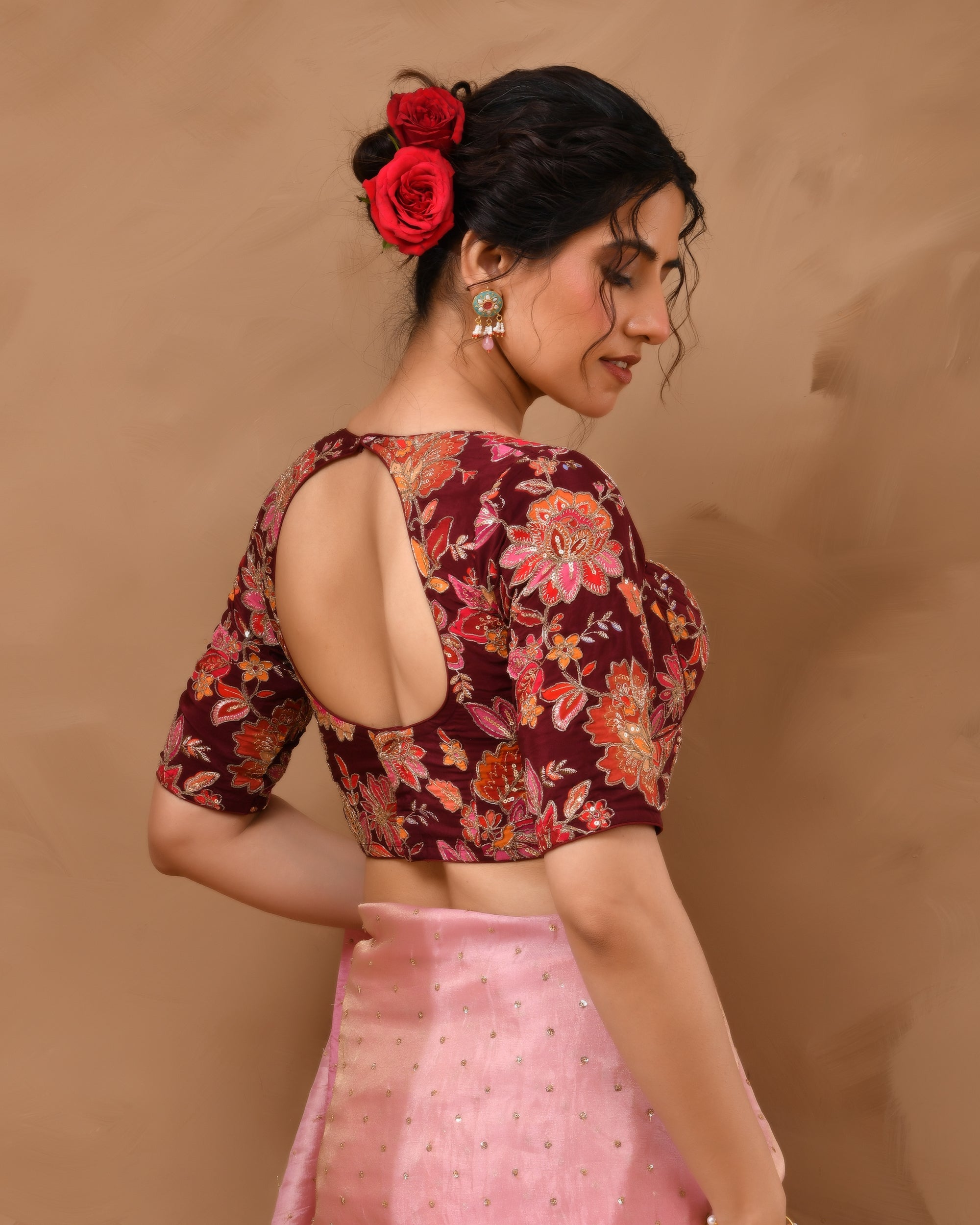 Embellished Maroon Sequined Saree Blouse