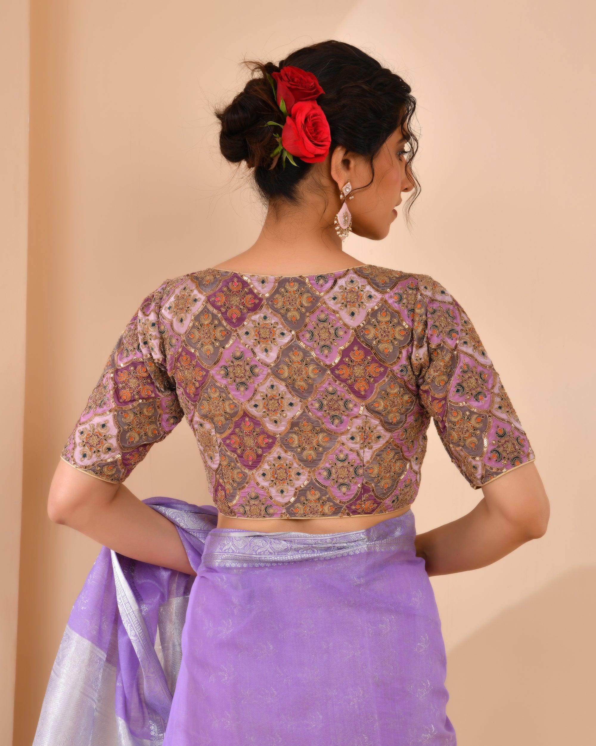 Lavender Geometric Pattern Embroidered Blouse