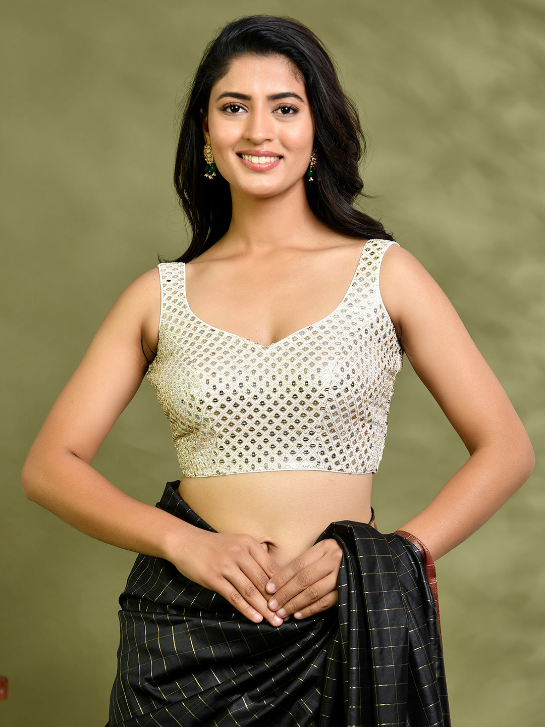 Ivory Mirror Work Sleeveless Blouse
