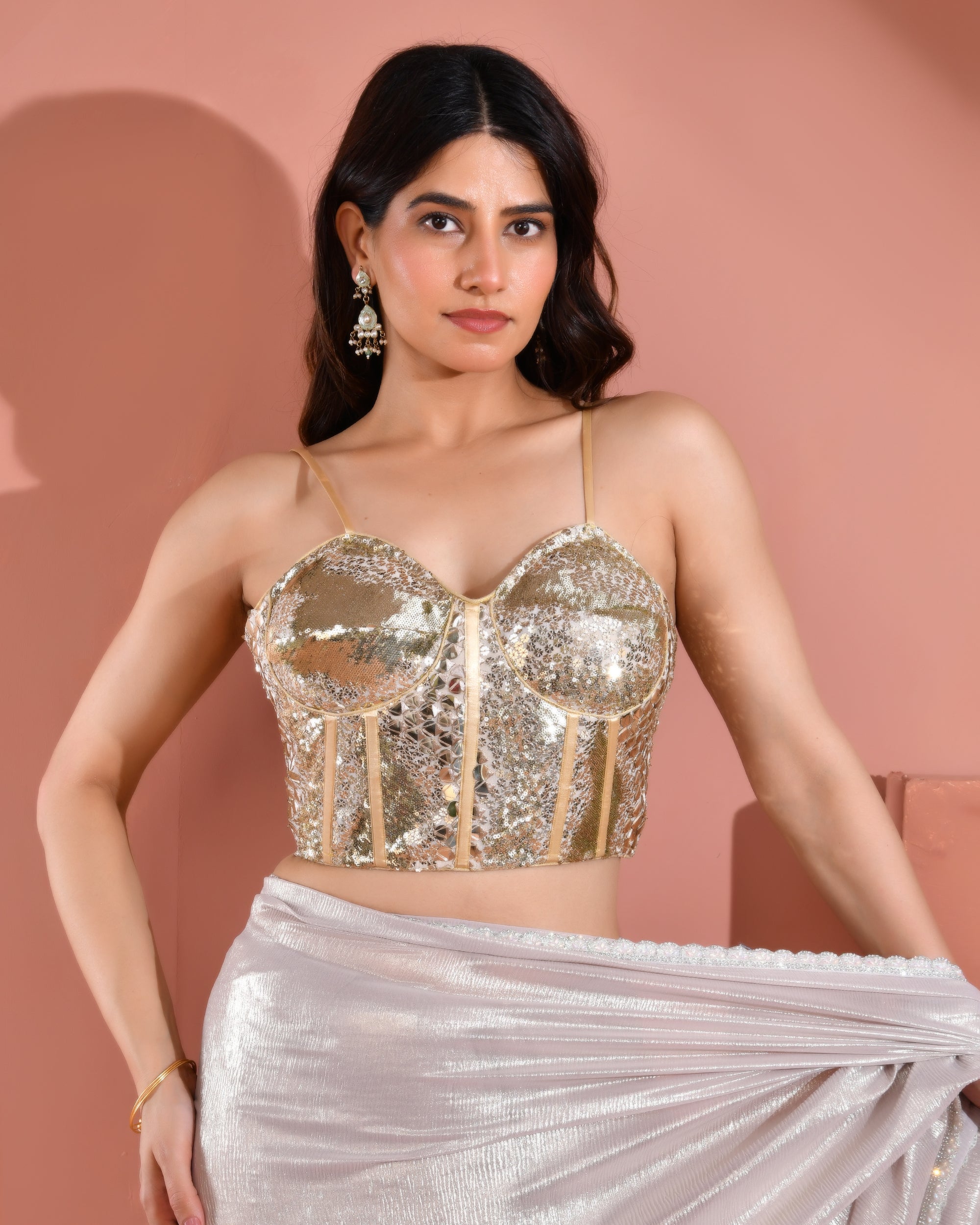 Golden Sequined mirror work corset style blouse