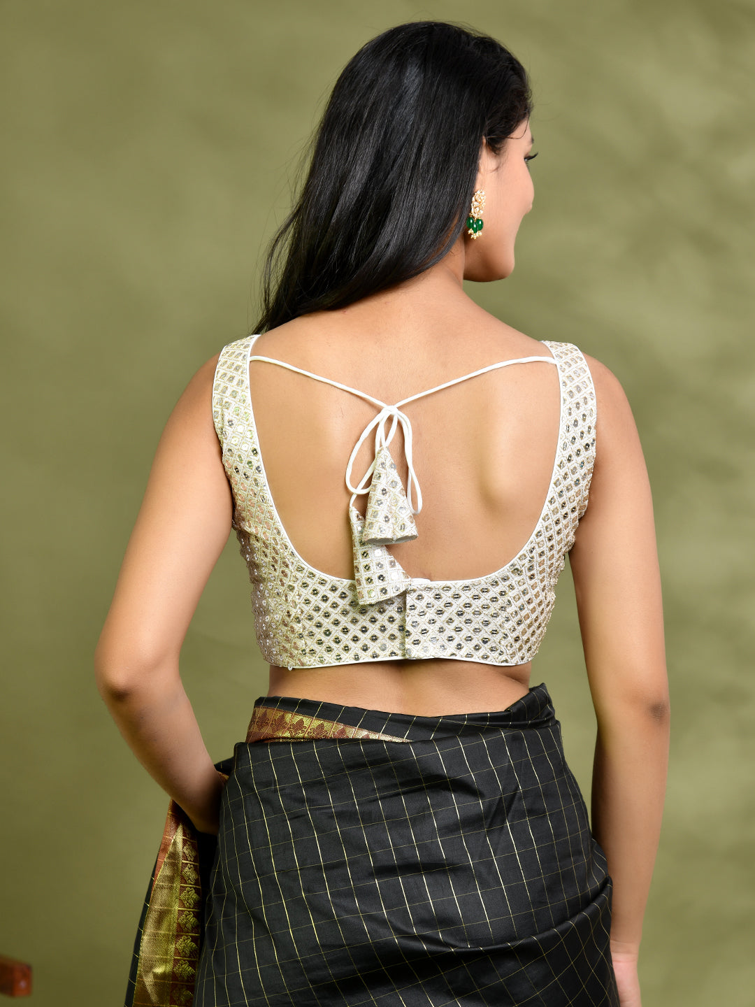 Sequined Mirror Embellished Sleeveless Padded Blouse